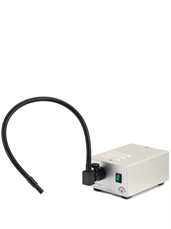 The Euromex LE.5209 is a compact and economical cold light source designed for stereo microscopy and general use in Materials Science. Choosing the right illumination is essential to obtain a perfect image with maximum resolution, and this unit provides a reliable solution with a single self-sustaining glass fiber light guide.