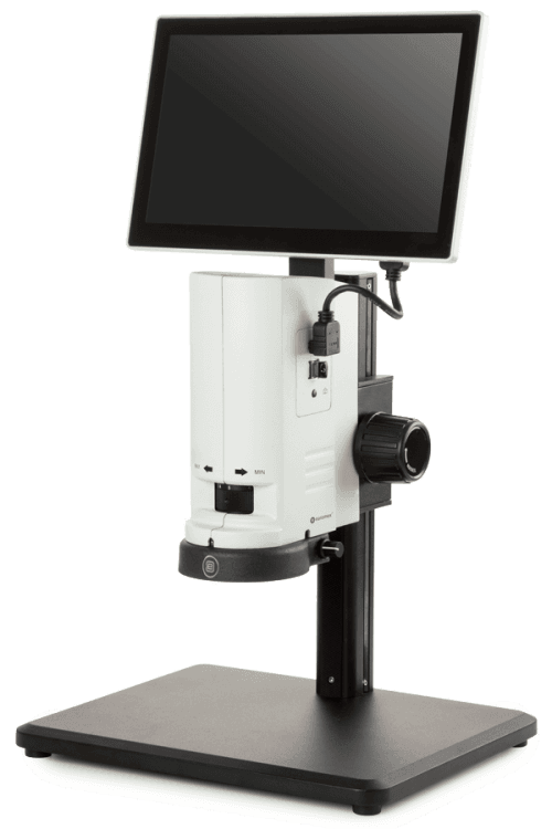 The digital MacroZoom is equipped with a built-in full High Definition 1080p camera which can deliver up to 60 images per second and is connected either to the supplied and attached 11.6” screen or an external stand-alone HD screen
